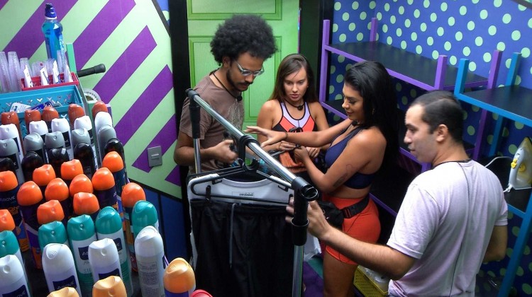 João Luiz dá risada do confinado e comenta: "Calma Gil, deu um eco aqui dentro". Thaís chega na despensa e pede ajuda para pegar o seu cabide. Pocah e Gilberto estão perto da arara e não ouvem a goiana. A cirurgiã-dentista então pega o seu próprio cabide e deixa o espaço.