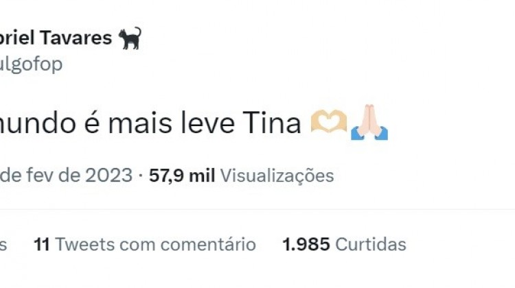 Logo depois da Eliminação de Tina no BBB 23, Gabriel mandou uma recado para a angolana. Em uma rede social, o modelo publicou uma mensagem de apoio para a terceira eliminada do reality: "Aqui o mundo é mais leve Tina", diz o ex-BBB.